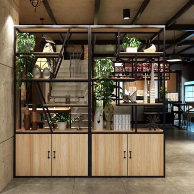 Khung sắt vững chắc làm thành giá đỡ chắc chắn tạo tạo hình dáng đẹp và sáng tạo. Kệ được chia làm nhiều tầng với dạng hình. Giữa các kệ có khoảng cách phù hợp giúp người sử dụng dễ dàng tìm kiếm và lấy được đồ dùng một cách nhanh chóng.