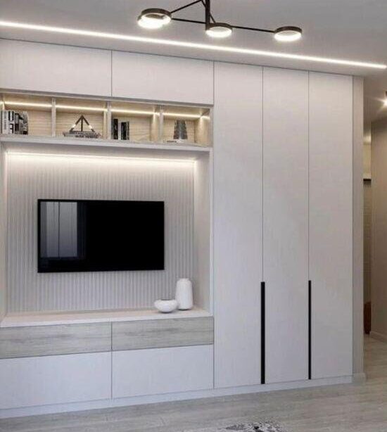 – Tối ưu hóa không gian: Sử dụng tủ quần áo kết hợp kệ tivi giúp tận dụng một cách hiệu quả không gian trong phòng. Bạn có thể tích hợp tủ quần áo và kệ tivi vào cùng một khu vực, tạo ra một không gian tiện lợi và gọn gàng.